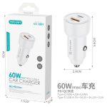 [CC-3201] Cargador De Coche De Doble Puerto QC+PD USB(30W) Y Tipo-C(30W/60W) – Blanco (REF-863613)
