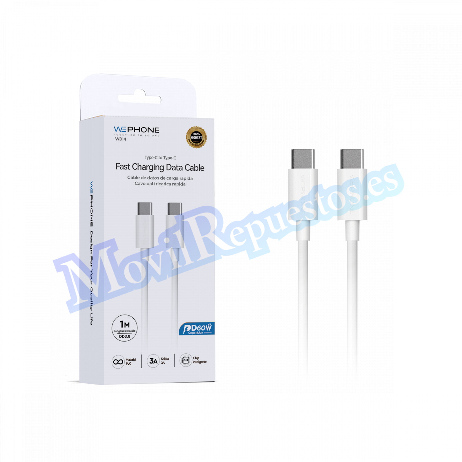 [WD14] Cable Tipo-C A Tipo-C 3A 1M – Blanco (REF-000355)
