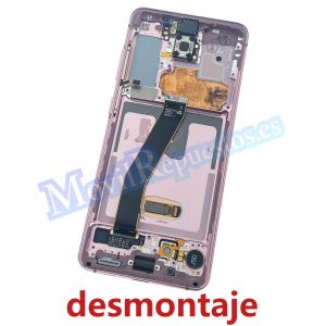 Pantalla Completa LCD Y Táctil Con Marco para Samsung Galaxy S20 (2020) G980F / G981B – Rosa (De Desmontaje)(Con Punto En La Pantalla)